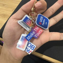 Với công nghệ in UV hoặc ép nhiệt, chùm chìa khóa mica có thể được in hình ảnh, logo, hoặc slogan với độ sắc nét cao. Bạn có thể đặt sản xuất theo: