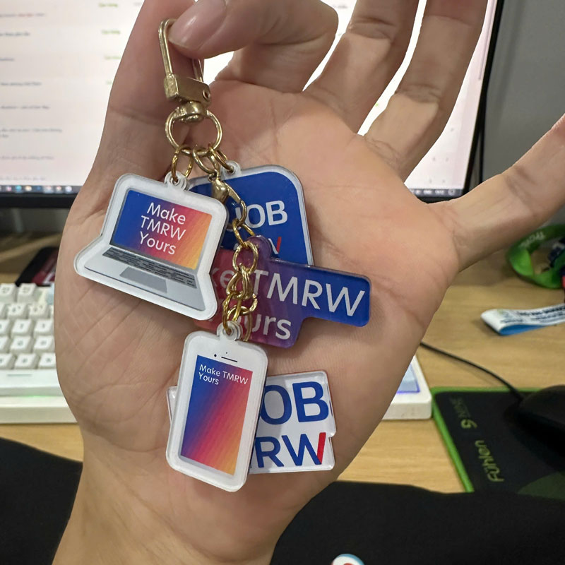 Với công nghệ in UV hoặc ép nhiệt, chùm chìa khóa mica có thể được in hình ảnh, logo, hoặc slogan với độ sắc nét cao. Bạn có thể đặt sản xuất theo: