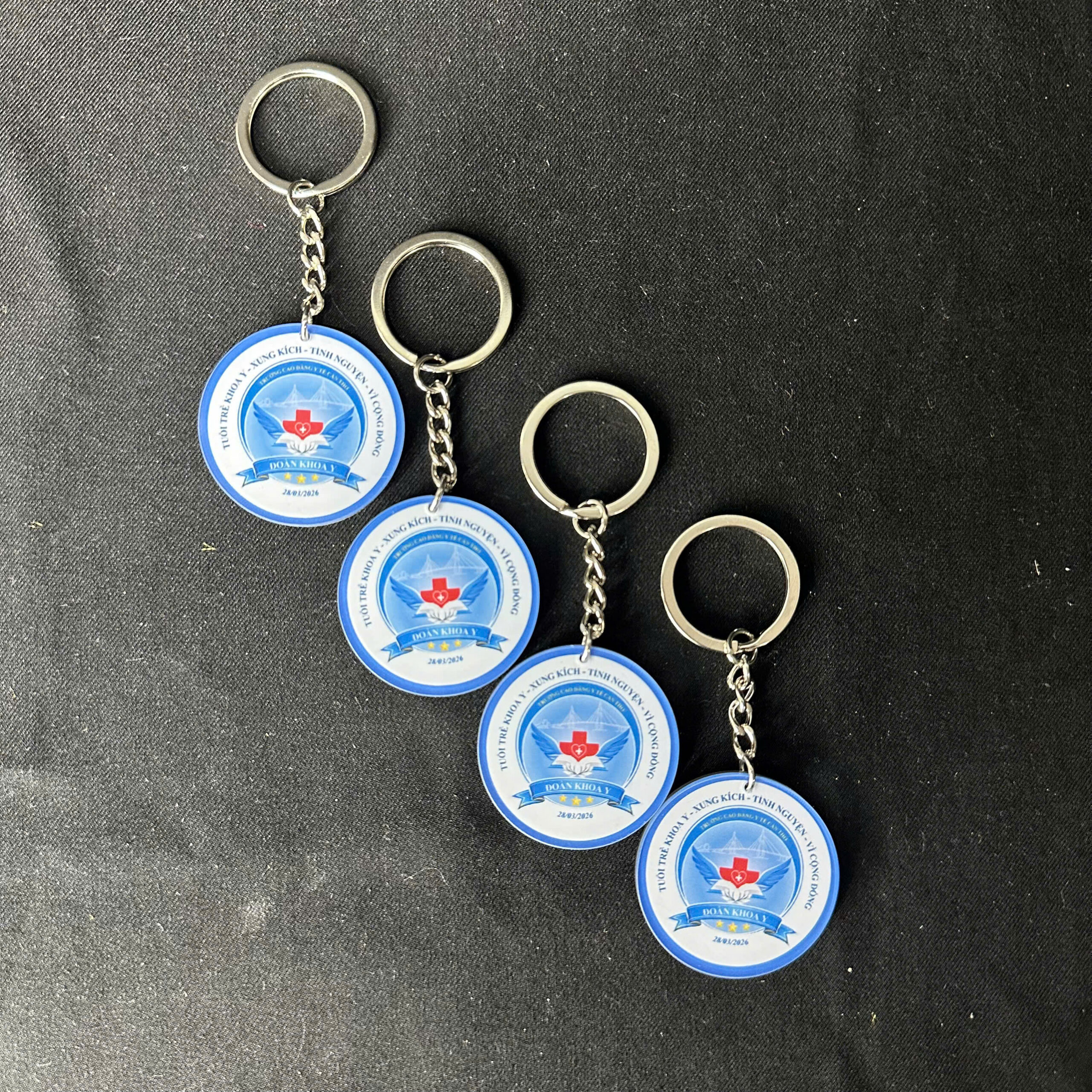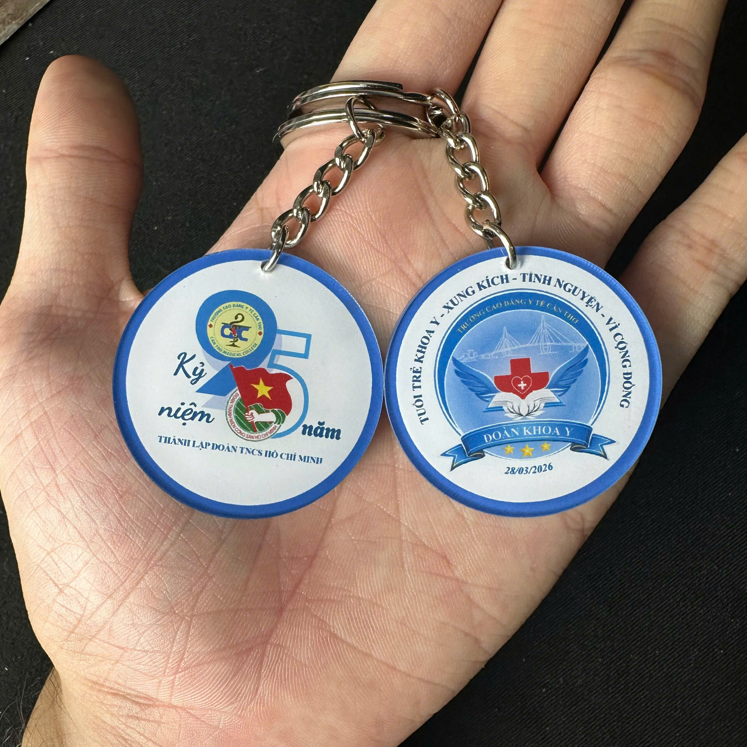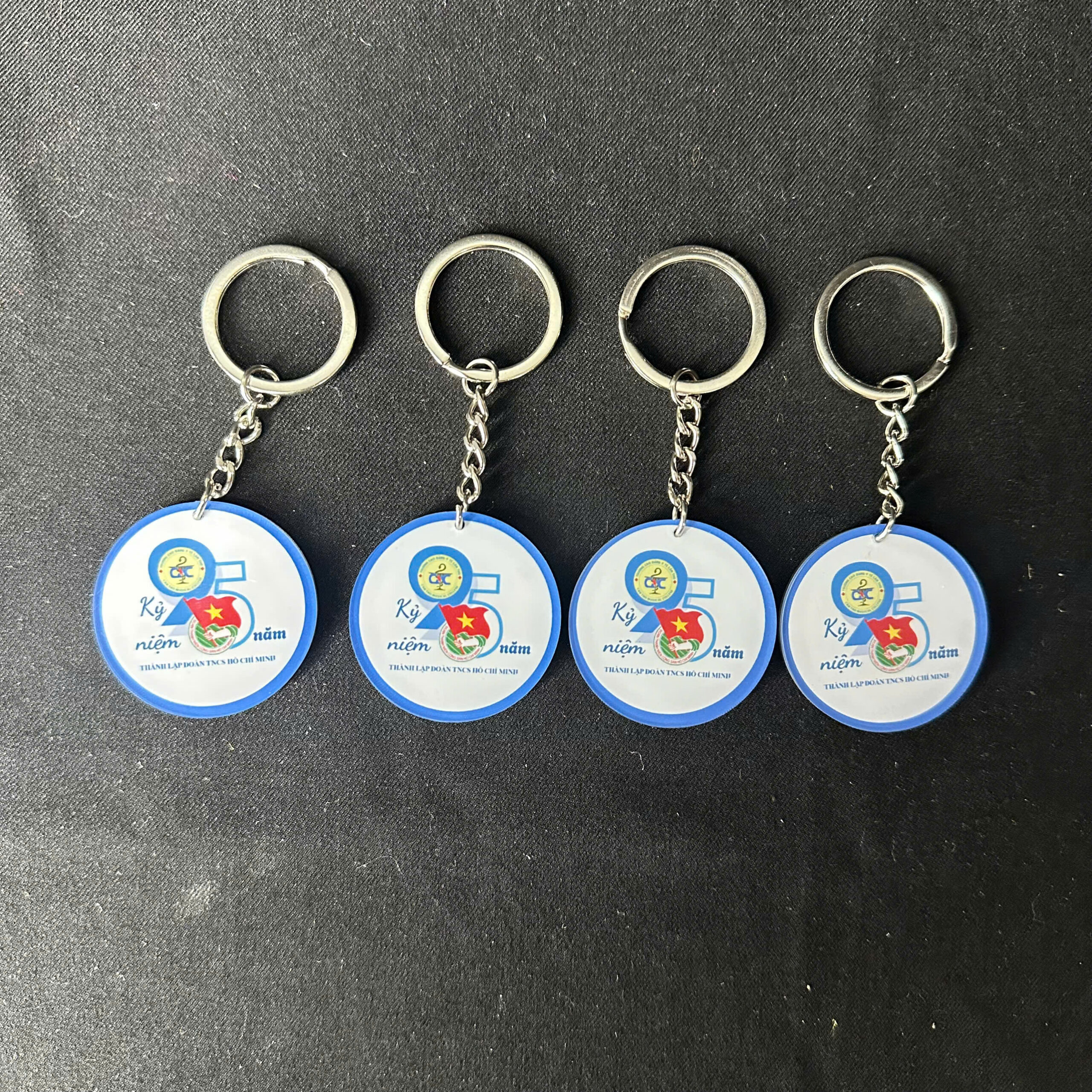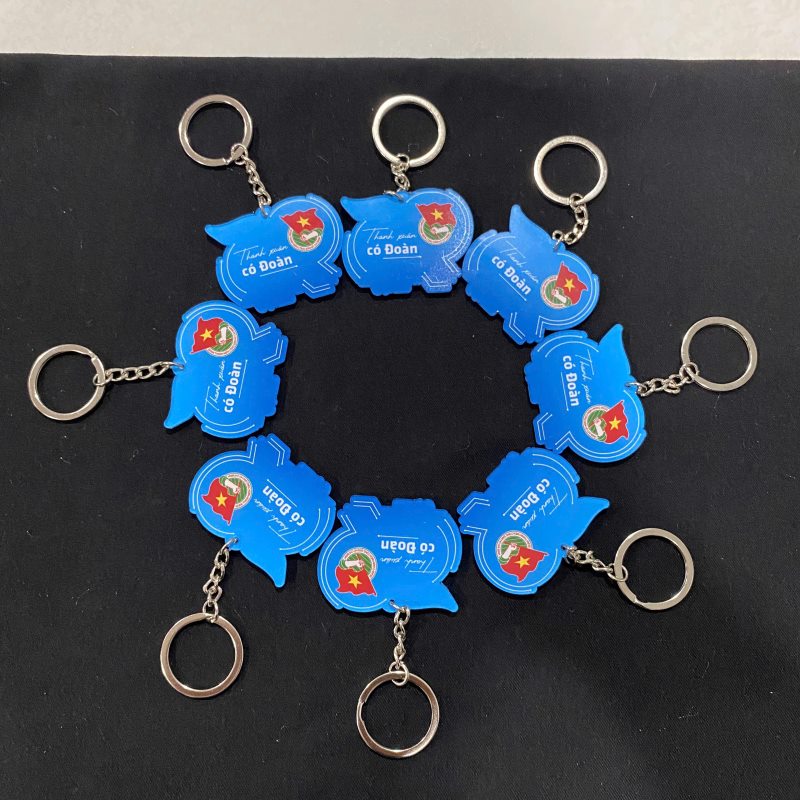 Với thiết kế đa dạng móc khóa có thể in logo đoàn, số “95 năm” hoặc các biểu tượng đặc trưng, giúp tạo dấu ấn riêng cho từng chương trình, sự kiện.